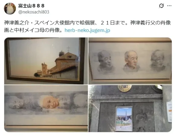 また、個展会場で撮影された画像では、神津さん自身が観客と対話する様子も紹介されており、その人柄の温かさや芸術への誠実な姿勢が伝わってきます。スペインのアトリエでの制作風景写真も公開されており、キャンバスに向かう真剣な表情や、自然光を活かして描く姿は多くのファンを魅了しています。